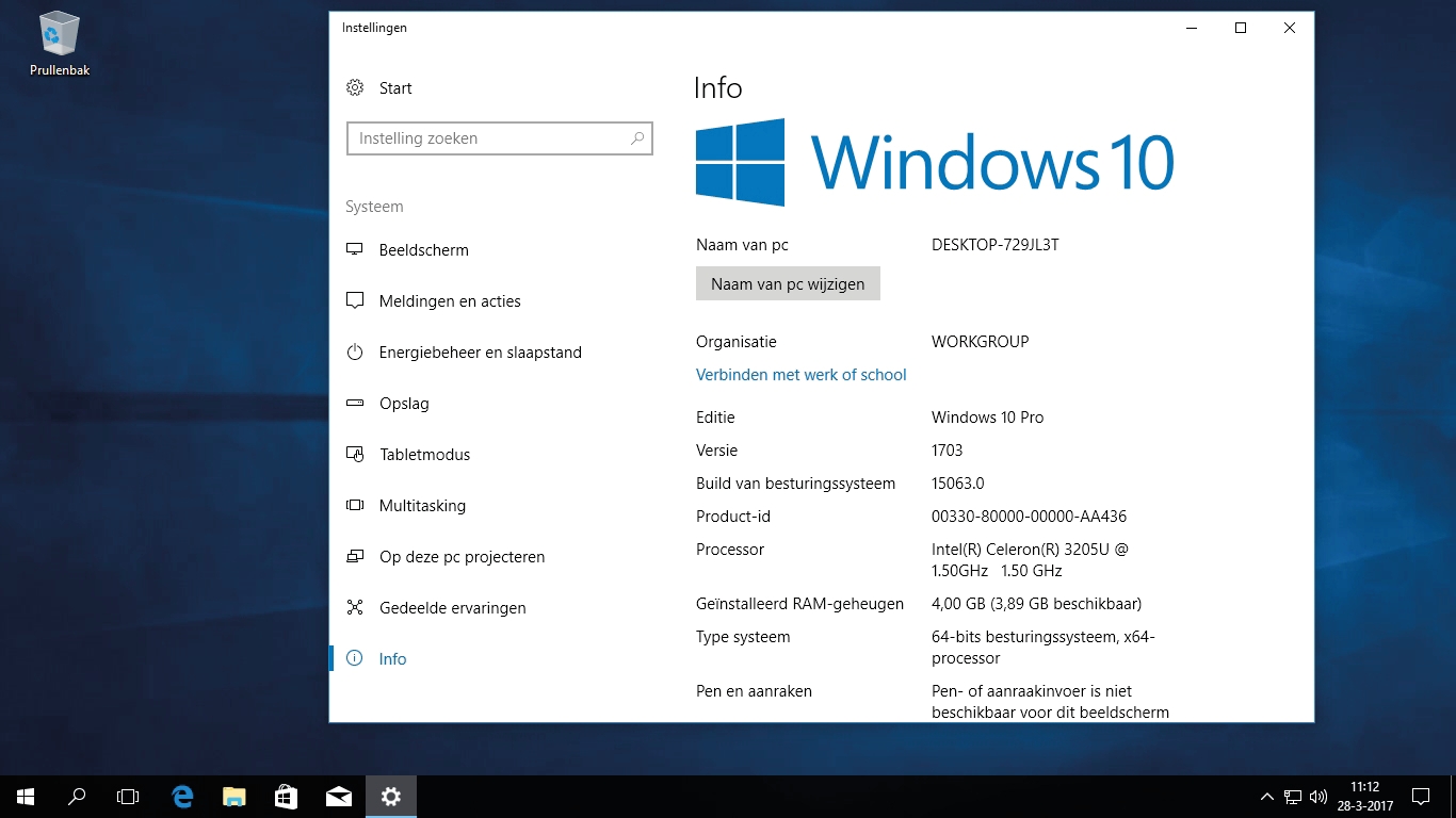 Het Win-X menu-item Systeem komt uit bij ‘Instellingen / Systeem / Info’. De informatie die daar staat doet niet onder voor wat er bij het klassieke Configuratiescherm stond. Helaas ontbreken koppelingen naar de ‘Instellingen voor externe verbindingen’, ‘Systeembeveiliging’ en ‘Geavanceerde systeeminstellingen’.