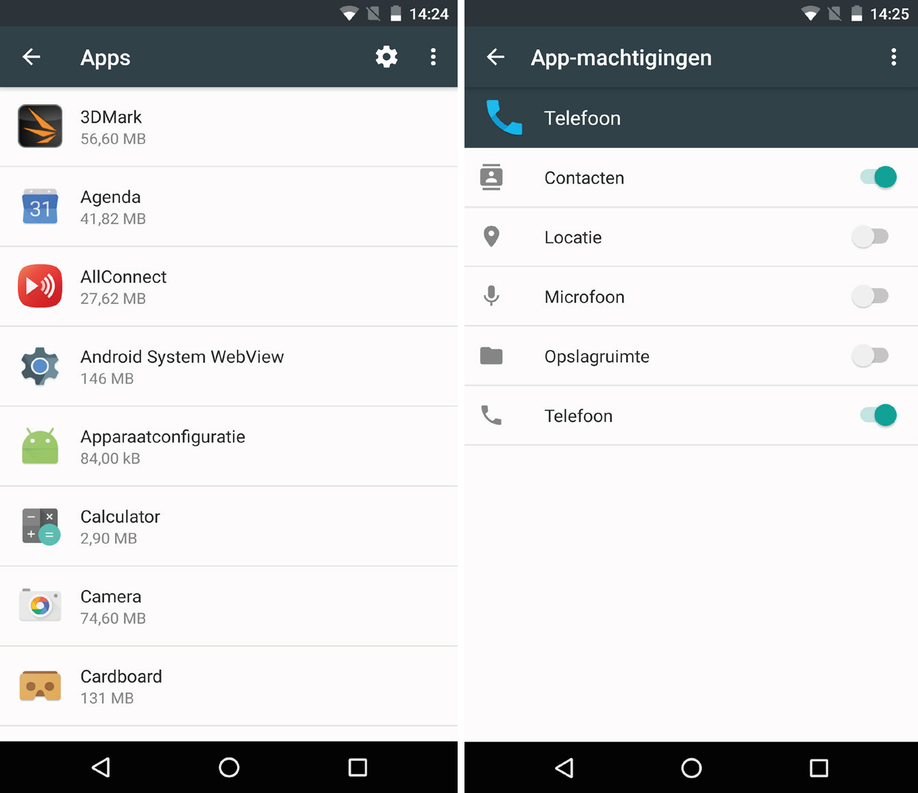 Wil je een besmetting opsporen, dan moet je eerst alle geïnstalleerde apps doornemen. Meer dan negentig procent van alle besmettingen wordt namelijk veroorzaakt door schadelijke applicaties. Je vindt het overzicht onder ‘Instellingen / Apps’. Klik je op een van deze apps, dan zie je via de optie ‘Machtigingen’ en/of via het snelmenu rechtsboven alle rechten die worden opgeëist. Een ervaren gebruiker kan aan de hand van deze machtigingen vaak al zien welke app mogelijk de oorzaak is voor het vreemde gedrag.