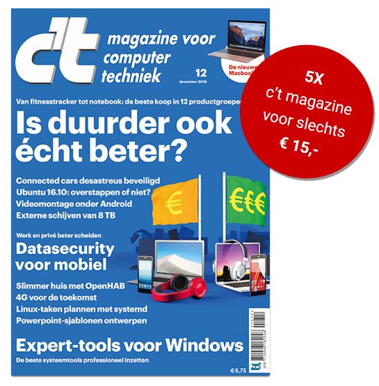 Profiteer nu een half jaar van 56% korting op c’t en ontvang liefst 5 nummers voor slechts €15,-.
