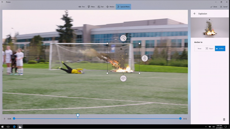 De app monteert films, gebaseerd op automatisch herkende gezichten. Hij kan ook via 3D-tracking CGI-effecten toevoegen die door andere gebruikers gemaakt zijn. De functie Story Remix kan bovendien muziek toevoegen. En de montage van video’s aanpassen als de gebruiker het tempo van de muziek verandert. Met het automatisch herkennen van lachende gezichten kunnen interessante scènes gevonden en ingebouwd worden. De app zit gratis in de Fall Creators Update voor Windows 10.
