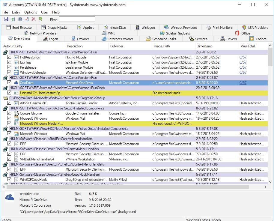 Net als Process Explorer biedt het programma Autoruns functies die nuttig zijn voor het opsporen van virussen en andere malware.