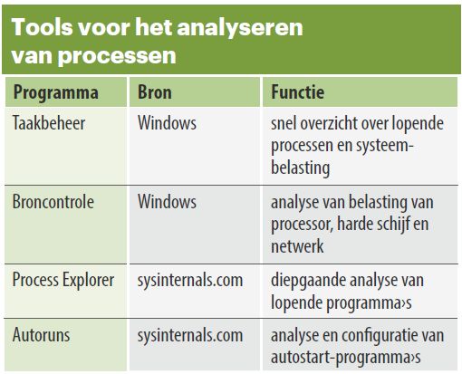 Wanneer je er met de diagnosetools van Windows zelf niet uitkomt, heb je externe tools nodig. Daar komt allereerst de Sysinternals Suite voor in aanmerking. De tools uit die omvangrijke verzameling zijn gratis te downloaden, afzonderlijk of allemaal in een keer (zie de link onderaan dit artikel). Ze werken zonder dat je ze hoeft te installeren.